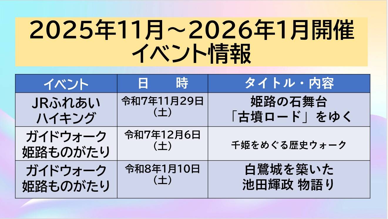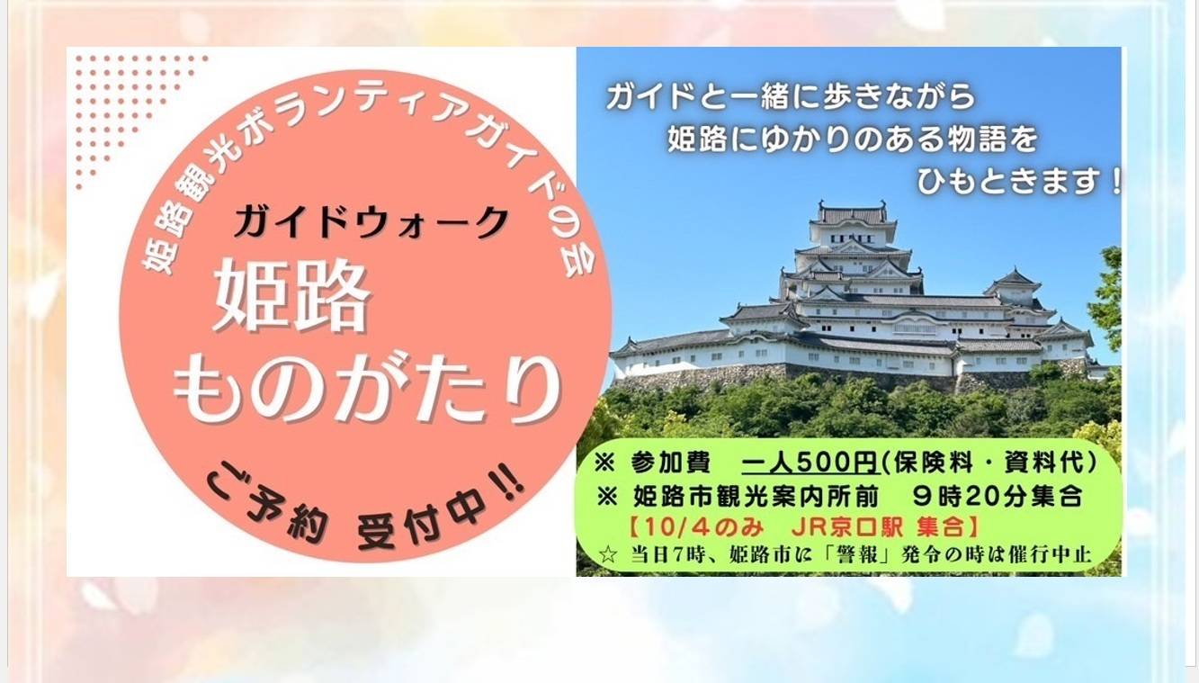 - 12月の姫路旅ものがたりは12月1日と22日に開催いたします。皆様のご参加をおまちいたします。